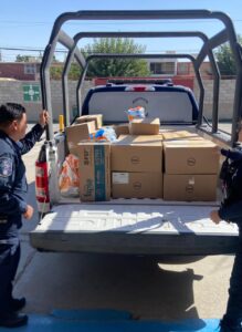 CIUDAD JUÁREZ, CHIH. – En un gesto de solidaridad y compromiso con las causas sociales, estudiantes del CBTis No. 114, junto con elementos de la Dirección de Vinculación y Proximidad Social de la Secretaría de Seguridad Pública del Estado (SSPE), organizaron una colecta de donativos para apoyar a familias afectadas por las recientes inundaciones en Poza Rica, Veracruz.