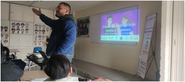 Los facilitadores abordaron conceptos básicos sobre violencia intrafamiliar y de género, además de explicar la importancia de contar con redes de apoyo. También informaron a los estudiantes sobre las instituciones a las que pueden acudir en caso de enfrentar una situación de riesgo.