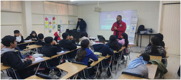 Los facilitadores abordaron conceptos básicos sobre violencia intrafamiliar y de género, además de explicar la importancia de contar con redes de apoyo. También informaron a los estudiantes sobre las instituciones a las que pueden acudir en caso de enfrentar una situación de riesgo.